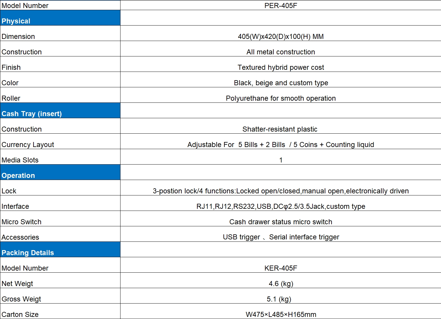 405(W)x420(D)x100(H) MM